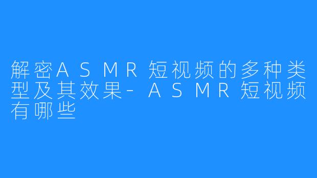 ASMR,全称为自发性脑性器官反应(Autonomous Sensory Meridian Response),是一种能够带来放松、愉悦感觉的现象。在ASMR视频中,主要通过听觉和视觉来刺激观众,带给他们一种极其柔和的舒适体验。ASMR视频通常被包括在一些放松、娱乐等领域中,而短视频则更能快速地给人们带来愉悦感。那么,ASMR短视频有哪些类型呢?